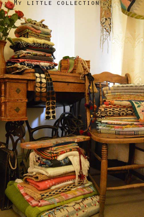 Along with the kitchenalia and small animals, I collect fabrics. Sometimes I find table runners or pillowcases but often just squares or off-cuts. I once vowed to never get rid of any garment before extracting a square for my patchwork quilt (that I never made) so have come to realise just keep the sentimental bits and pass on anything else before the house explodes into a big mass of patchwork confetti!