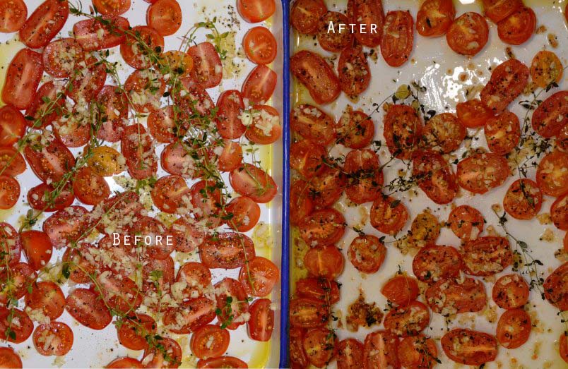 Take out the tomatoes, remove the thyme stems and place on the griddled bread, adding the feta and basil leaves to taste. Drizzle over olive oil and thick balsamic and you have before you – Killer Tomatoes (in a good way).