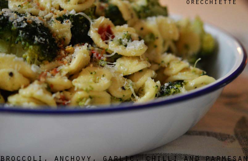Looking through books, I found this recipe crop up again and again and as it met all my specifications I decided to give it a whirl. You’ll probably have most of the ingredients in the pantry already, so it will probably be a broccoli excursion unless you have some. Don’t worry if you’re not fond of anchovies, they don’t taste fishy in the final dish-they are just there for subtle flavour.