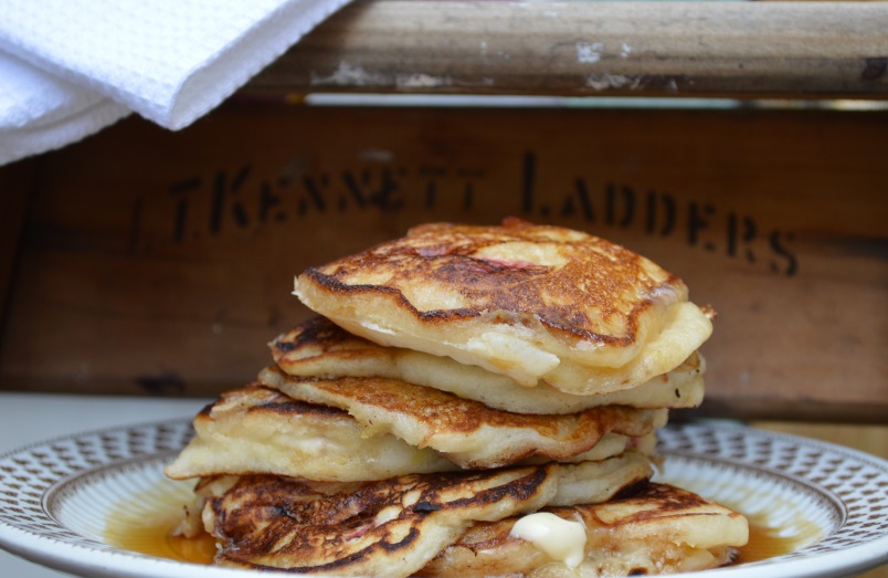 Add the fruit and carefully stir it in so it doesn’t break up. Heat butter in a pan, once hot add two spoonful’s of batter per pancake and let them cook for about 2 minutes (or until golden brown) on both sides. Be careful not to make them too thick, as they won’t cook through properly.