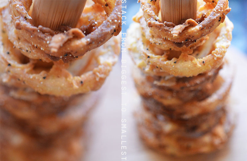 These look fantastic. Somewhere in my distant past I read about another perfect onion ring batter and it is an easy formula that I didn’t have to write down: mix equal parts of beer and flour, let it sit on the counter for a few hours, add onion rings and deep fry. Don’t add anything else—no salt or egg or anything. They are much like a tempura batter, airy and crunchy.