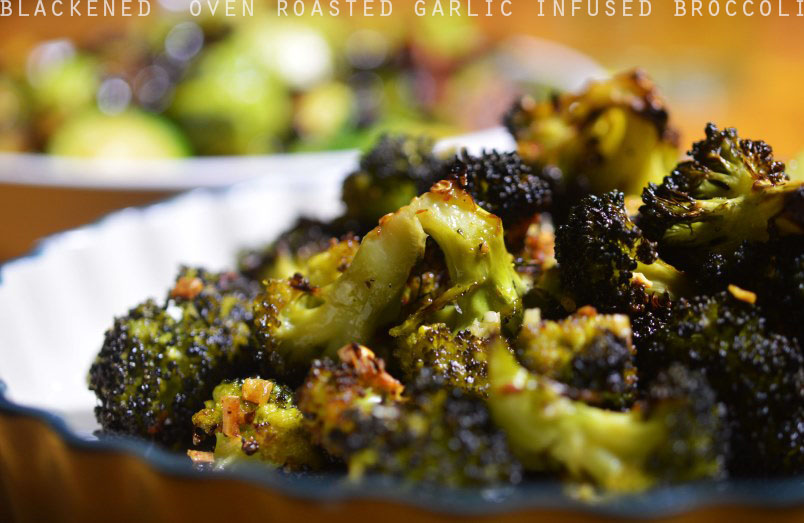 Add your broccoli to a large bowl and toss in the olive oil and garlic, then mix well. Transfer to a baking dish and season well.