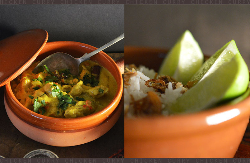 This one’s a real treat, great in winter or summer, for 2 or for a crowd……the flavour is soft, with a hint of sweetness from the palm sugar and subtle warmth from the chilli and spices. Really very simple, once you have your curry paste it’s merely a case of frying it with onion, adding the chicken and then coconut milk and letting it simmer as you prepare your rice.