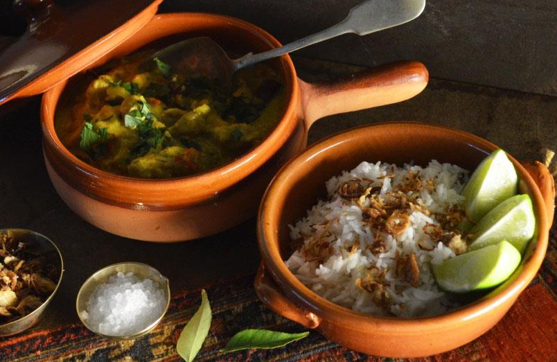 Add seasoning and more palm sugar to taste. Serve with fluffy rice, lime wedges, fried shallots and a sprinkle of fresh coriander.