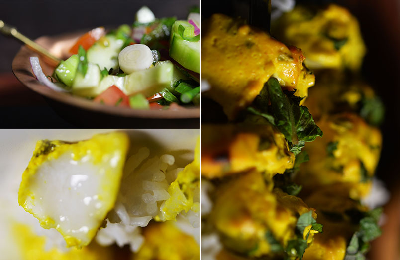 - 500g chunky, strong, fish (I used half salmon and half white fish, like rockling) removed of skin and any bones. In the UK monkfish tail, cod or haddock would all work well.