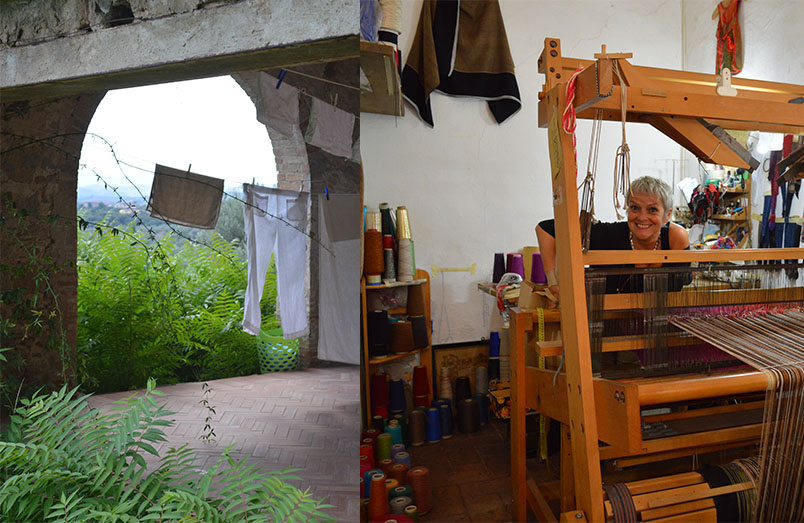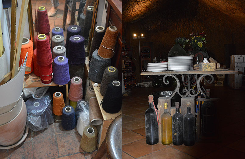 Cellar at San Guiseppe in Sienna and mohair wool wovan by a woman in Sienna also – beautiful garments all hand woven