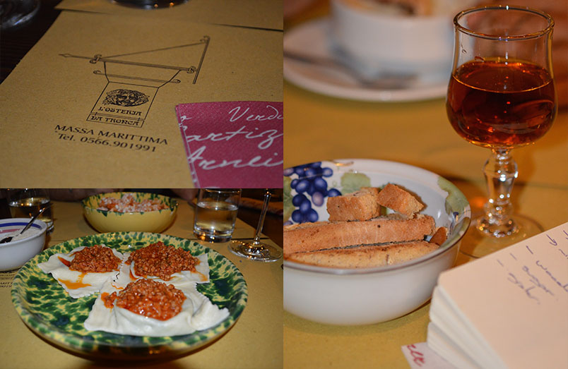 Spinach and ricotta ravioli with ragu, vin santo at Tronca trattoria, Massa Marittima