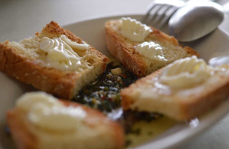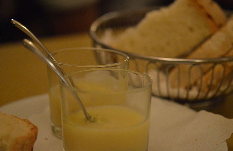 Potato soup served with the bread at San Guiseppe
