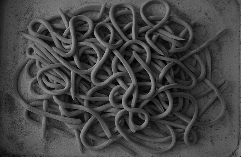 I discovered the wonders of pici in Tucany, where it is served commonly with wild boar (the poor old stuffed heads are everywhere, usually sporting spectacles funnily enough). The best I had was in a tiny village high up in Montepescali, in Osteria Sotto Le Logge and one of the best food experiences in my life – our Italian is not great and we did try to weasel the recipe out of the host but didn’t get very far. The pici was swaddled in the most luxurious tomato sauce I have ever experienced. I have tried to recreate it and I think come close but the key is the quality of tomatoes and Italy always wins!